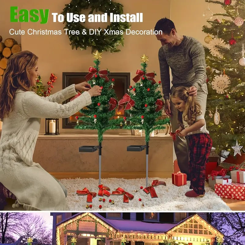 NNETM 2PCS Solar Bow Lights - Waterproof Outdoor Christmas Tree Decorations for Yard, Garden, and Holiday Atmosphere - Elegant Landscape Lighting
