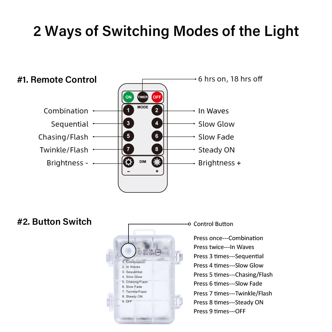 - Package Includes: 1* Battery Powered String Light, 1*Remote Controller, 1*User Manual